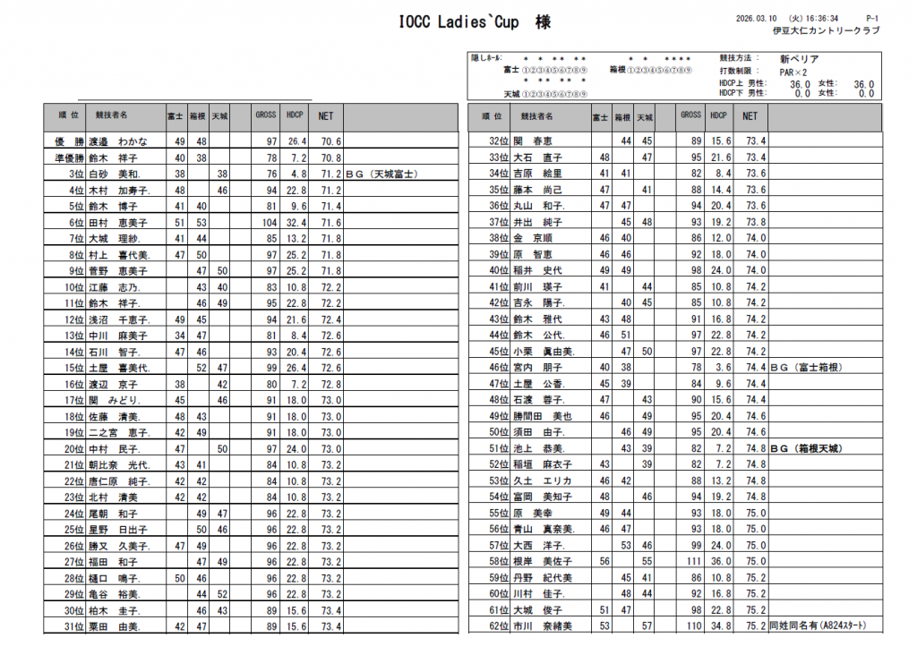 第7回IOCC Ladies’CUP結果