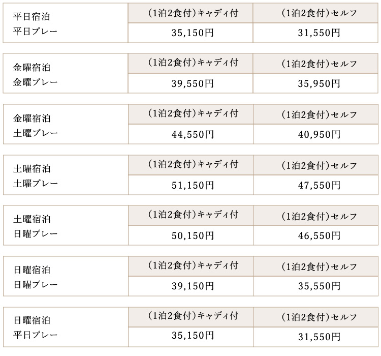 宿泊ゴルフプラン期間:2026年4月1日~6月30日 宿泊ゴルフプラン期間