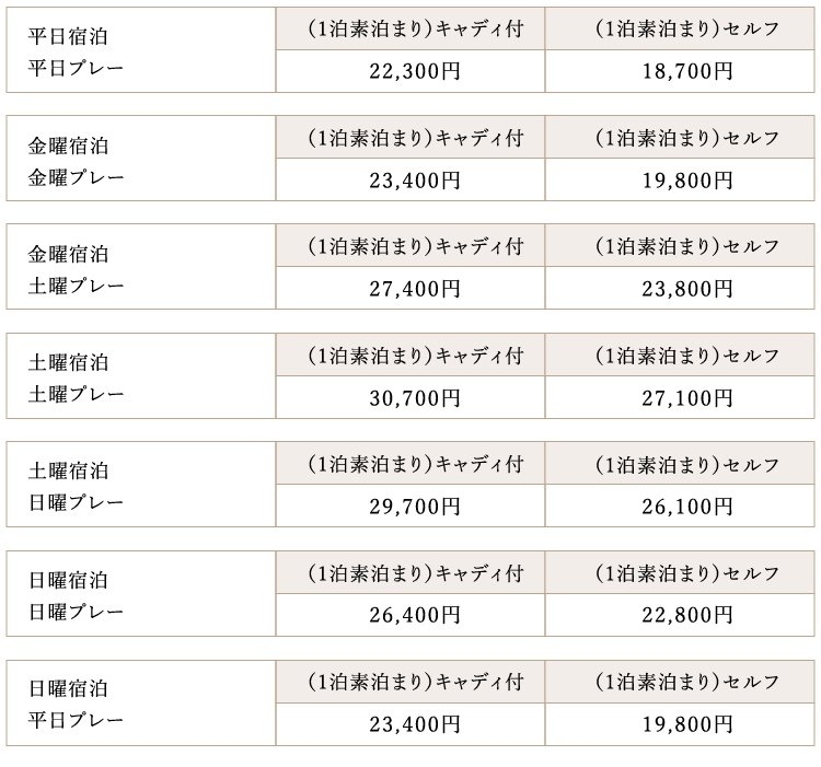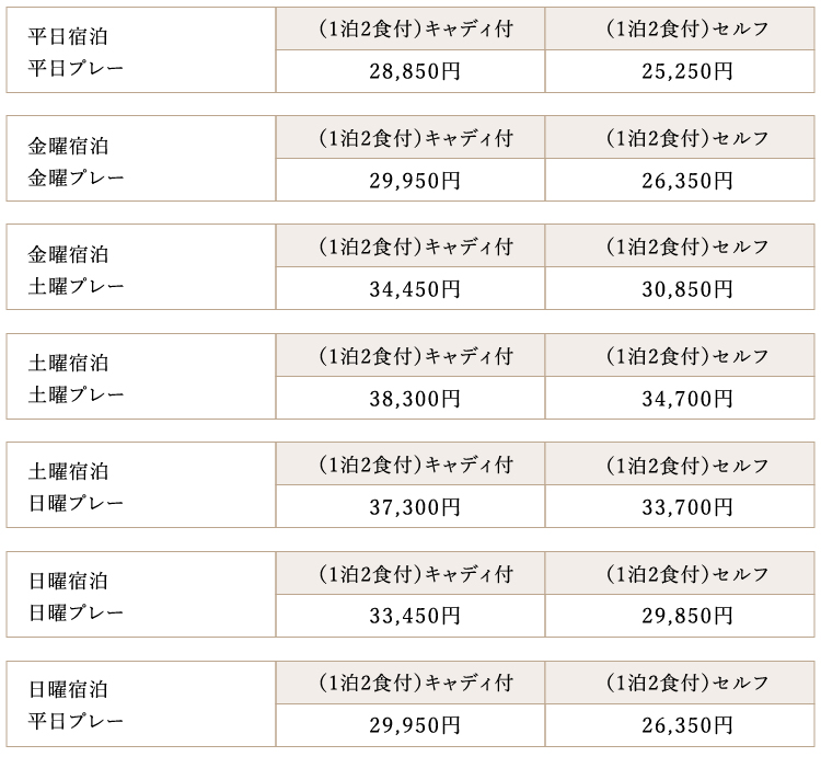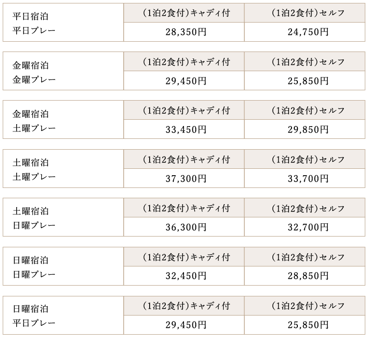 宿泊ゴルフプラン期間:2025年10月1日~12月28日 宿泊ゴルフプラン期間